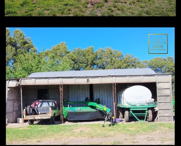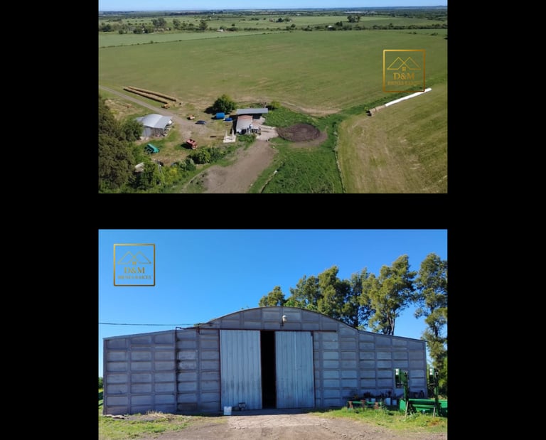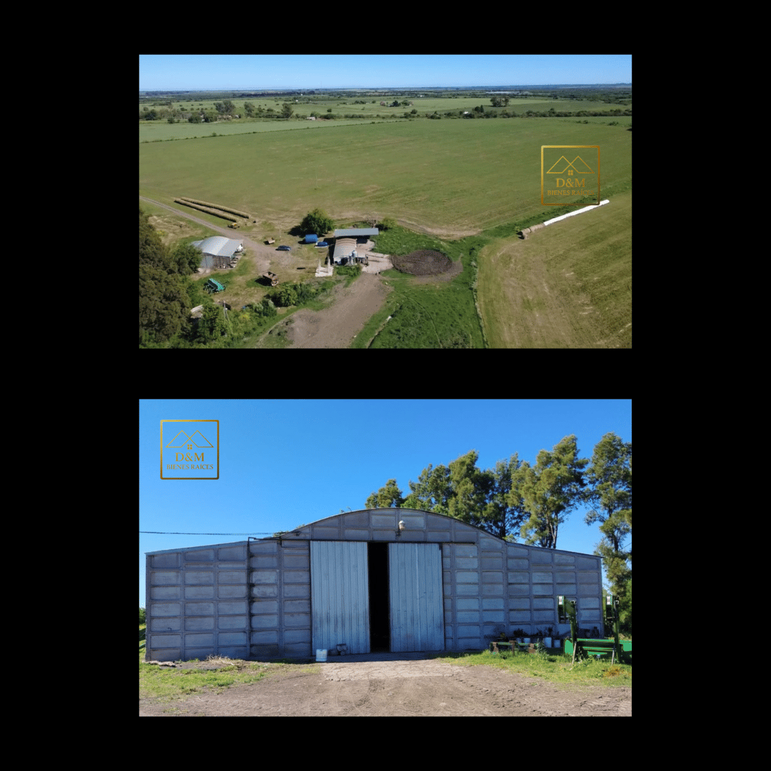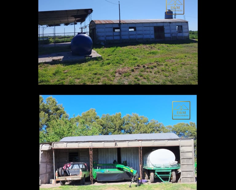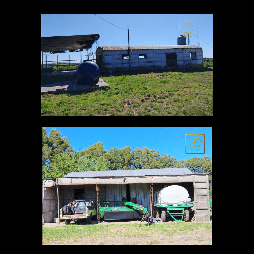 El otro galpón de 105 m2 con manga y casilla de operar y tres corrales con piso de cemento, perimetrales de los corrales de caño galvanizado.